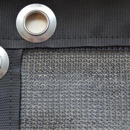 -Losse afsnijding van de rol met omzoomde rand en ronde zeilogen om de 50cm