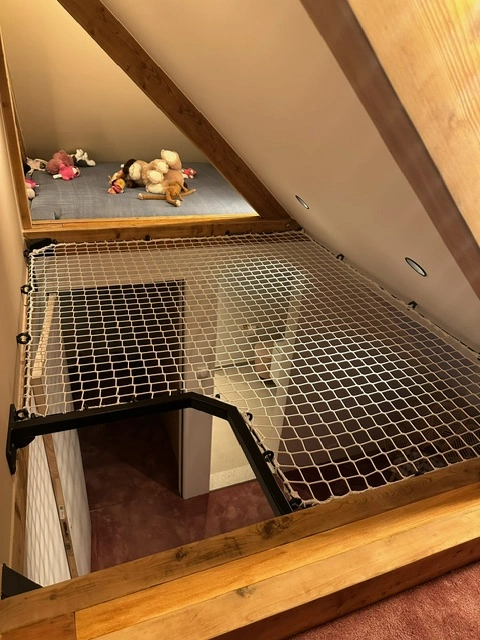 Het net is niet sterker dan de bevestiging. Je dient zelf te zorgen voor deugdelijke en stevige ankerpunten om de veiligheid te waarborgen.