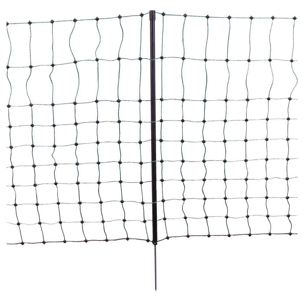 • Eenvoudige Plaatsing: De palen zijn uitgerust met een enkele metalen punt, waardoor het net zeer snel en licht in de grond te steken is. Ideaal voor wie de afrastering regelmatig wil verplaatsen.