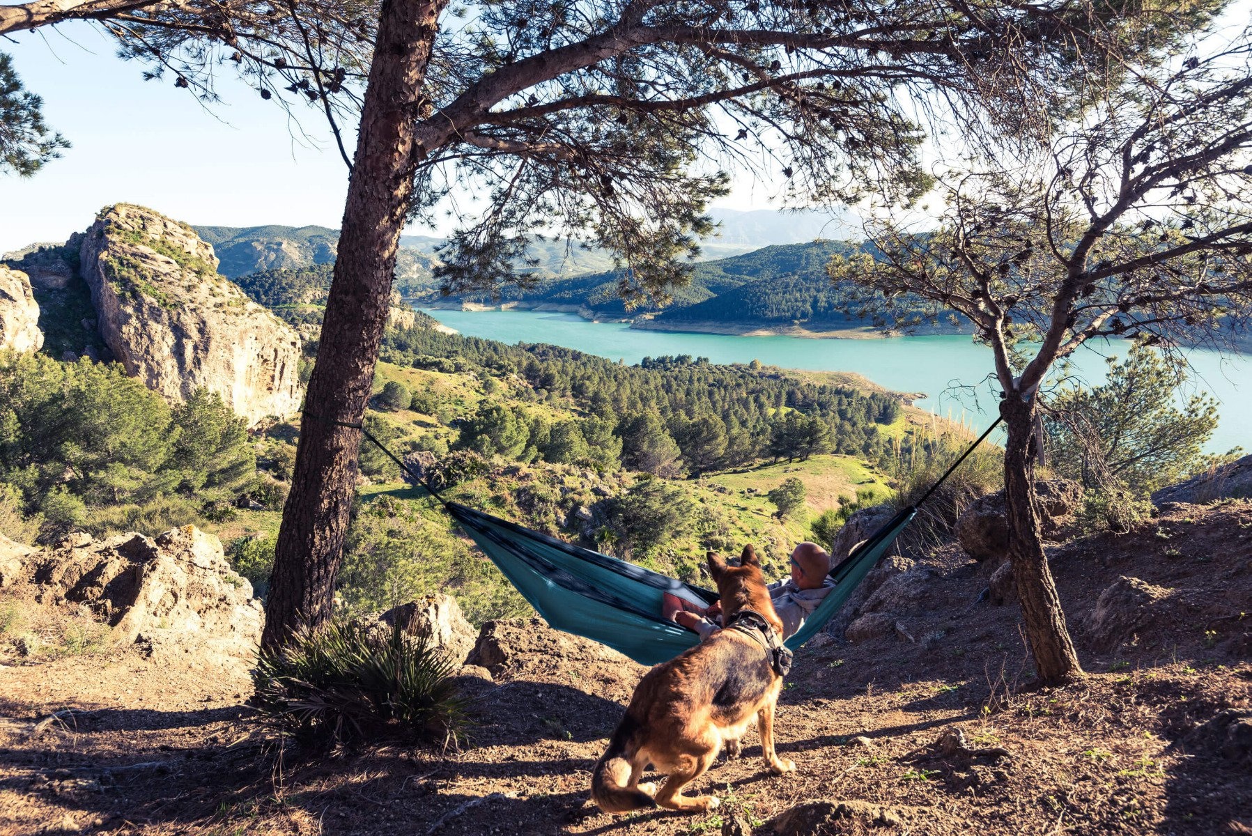 De bijgeleverde Tree-Trap is 2 x 3 meter lang. Genoeg lengte dus om een grote afstand te overbruggen. De twee lichtgewicht karabijnhaken klik je makkelijk aan de reishangmat vast.