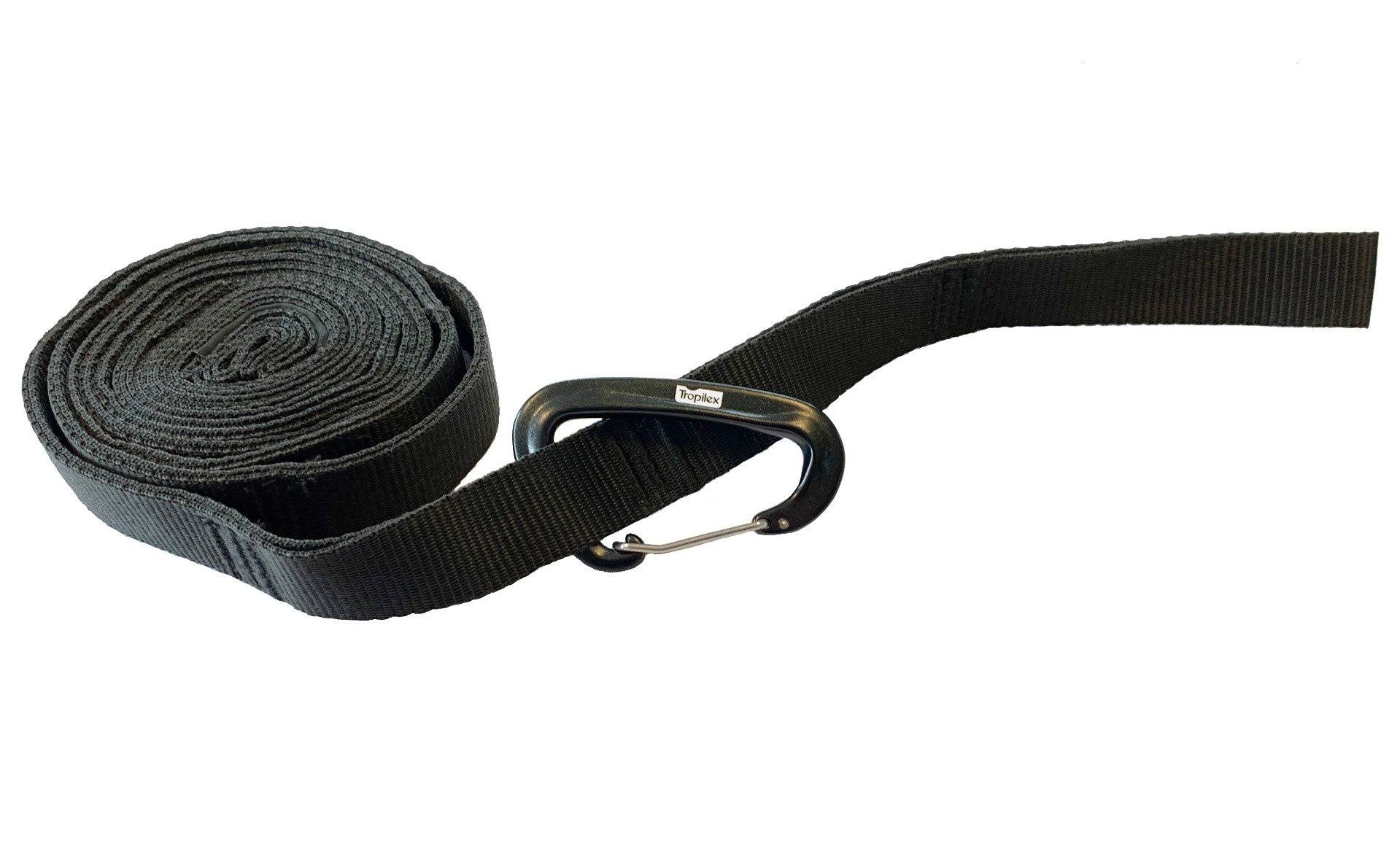 De bijgeleverde Tree-Trap is 2 x 3 meter lang. Genoeg lengte dus om een grote afstand te overbruggen. De twee lichtgewicht karabijnhaken klik je makkelijk aan de reishangmat vast.