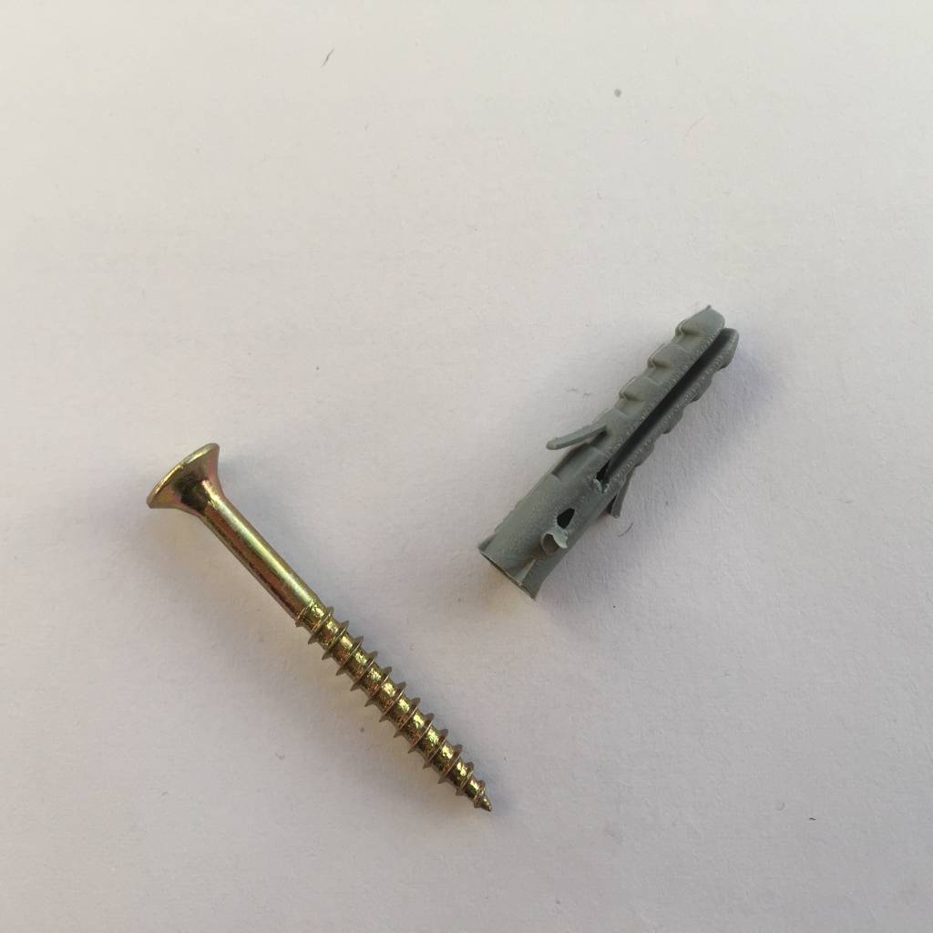 Set van een schroef en bijpassende plug voor het bevestigen van de kunststof doppen. Met deze set schroeft u de montagedop eenvoudig vast aan de zandbak. De schroef verzinkt volledig in de montagedop, hierdoor kunnen kinderen zich ook niet bezeren aan de schroef.